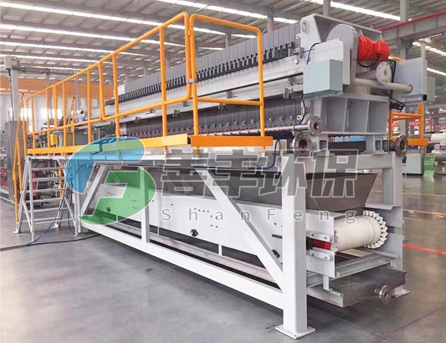 懸浮液用料泵送入濾機每個密閉的濾室,在壓力作用下,濾液透過濾層及濾布,經濾布出液口排出,濾渣則留在濾框內,從而達到固液分離的目的。