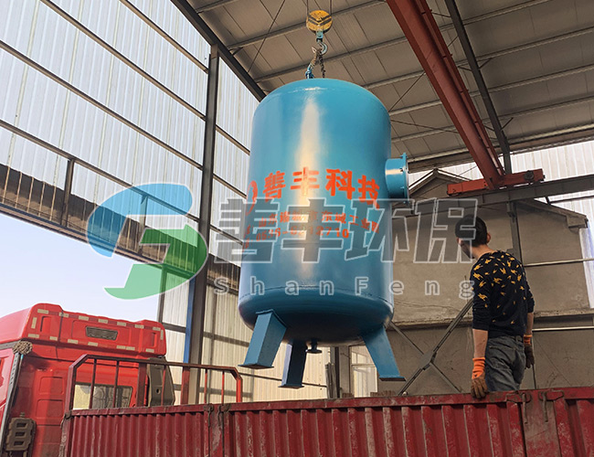 當機械過濾器因截留過量的機械雜質而影響其正常工作,則可用反沖洗的方法來進行清洗。利用逆向進水,同時通入壓縮空氣,進行氣水混合擦洗,使過濾器內砂濾層松動,可使粘附于石英砂表面的截留物剝離并被反沖水流帶走,有利于排除濾層中的沉渣、懸浮物等,并防止濾料板結,使其充分恢復截污能力,從而達到清洗的目的。反洗以進出口壓差參數設置來控制反沖洗周期,經驗得知一般為一天,具體須視原水濁度而定。