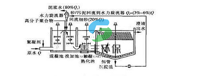 1.集沉淀、濃縮、排泥三道工序于一體。污泥濃縮一次成功,取消了濃縮池、占地 面積小。