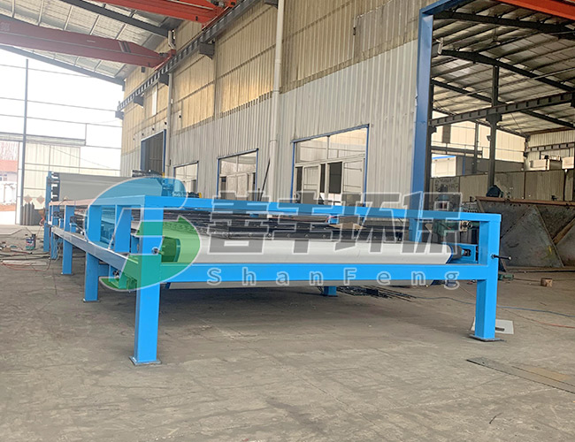 分體式濃縮帶式壓濾機(SF2000FT—SF3500FT):由于采用分體式結構,可根據(jù)污泥的含水濃度和用戶的需求,濃縮機的長度可在較大范圍內變動,處理量特別大,特別適用大型礦山尾泥、大型洗砂場,石場制砂泥漿脫水、陶瓷原料泥漿、洗山砂、土包沙泥漿脫水、河道清淤等工業(yè)污泥深度脫水處理和大型污水廠的使用。