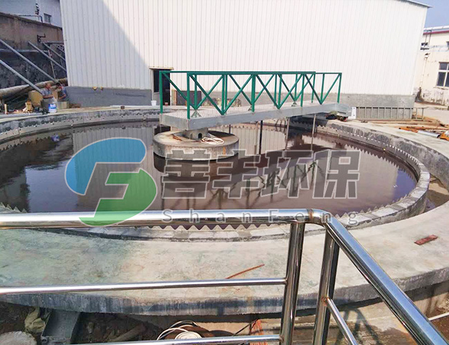中心傳動驅動機構推動刮泥機構沿中心旋轉,固定于刮臂上的刮板將泥由池邊逐漸刮至池中心的集泥斗中。刮泥板曲線對數螺旋線形,受力均勻,刮泥干凈,當池底遇有障礙時,能自動提耙,保護機器不受傷害,驅動機構可有扭矩保護裝置,工作更加安全。