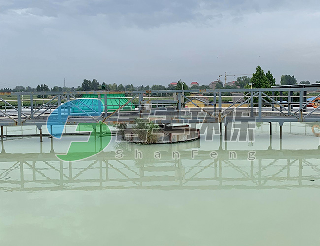 中心傳動驅動機構推動刮泥機構沿中心旋轉,固定于刮臂上的刮板將泥由池邊逐漸刮至池中心的集泥斗中。刮泥板曲線對數螺旋線形,受力均勻,刮泥干凈,當池底遇有障礙時,能自動提耙,保護機器不受傷害,驅動機構可有扭矩保護裝置,工作更加安全。