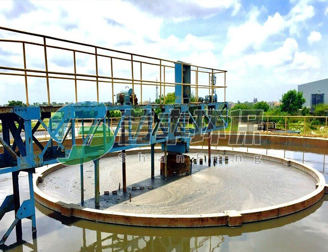 中心傳動驅(qū)動機構(gòu)推動刮泥機構(gòu)沿中心旋轉(zhuǎn),固定于刮臂上的刮板將泥由池邊逐漸刮至池中心的集泥斗中。刮泥板曲線對數(shù)螺旋線形,受力均勻,刮泥干凈,當(dāng)池底遇有障礙時,能自動提耙,保護(hù)機器不受傷害,驅(qū)動機構(gòu)可有扭矩保護(hù)裝置,工作更加安全。