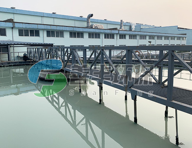 中心傳動驅動機構推動刮泥機構沿中心旋轉,固定于刮臂上的刮板將泥由池邊逐漸刮至池中心的集泥斗中。刮泥板曲線對數螺旋線形,受力均勻,刮泥干凈,當池底遇有障礙時,能自動提耙,保護機器不受傷害,驅動機構可有扭矩保護裝置,工作更加安全。