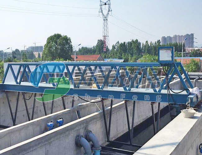 行車式刮泥機適用于給排水工程中平流式沉淀池,將沉降在池底的污泥刮集至集泥槽,并將池面的浮渣撇向集渣槽。可根據用戶的要求設置浮渣刮板。按水流方向,可分為逆向刮泥逆向排渣和逆向刮泥同向排渣方式。刮泥機構在不刮泥回程時刮泥耙全部抬起。當回到刮泥的起始位置時,刮泥耙落下,這樣周而復始的工作。