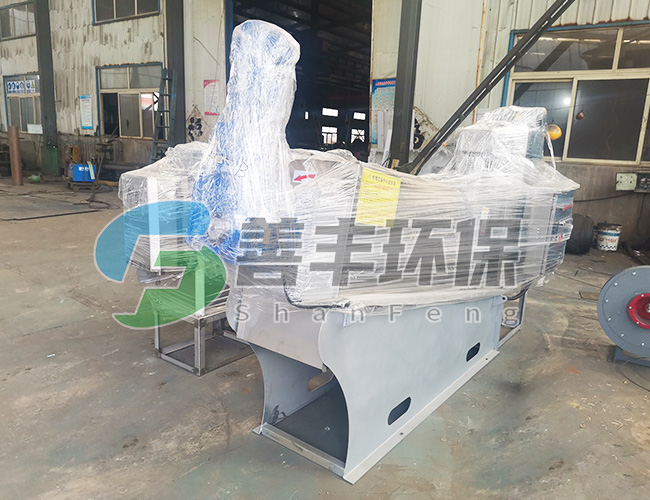 2、在主軸上,位于排泥箱內(nèi)設(shè)有阻泥板,阻泥板與脫水簡之間留有間隙。阻泥板的設(shè)置可阻擋污泥,使脫水簡內(nèi)的污泥具有一定的壓力, 可將污泥中的水充分?jǐn)D出,達(dá)到更好的脫水效果。