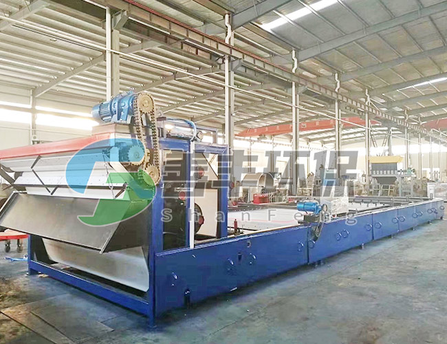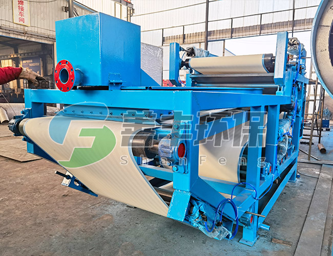 帶式污泥脫水機是一種新型高連續運行的固液分離設備。它以聚脂網作為過濾介質,能把經過予處理含水率在99.5 以下的各種懸浮液,經過多級壓榨脫水成泥餅狀(其脫水后含水率隨不同物料而異)。