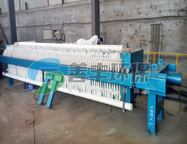 懸浮液用料泵送入濾機每個密閉的濾室,在壓力作用下,濾液透過濾層及濾布,經濾布出液口排出,濾渣則留在濾框內,從而達到固液分離的目的。