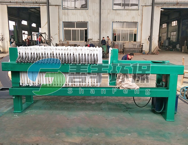 懸浮液用料泵送入濾機(jī)每個(gè)密閉的濾室,在壓力作用下,濾液透過(guò)濾層及濾布,經(jīng)濾布出液口排出,濾渣則留在濾框內(nèi),從而達(dá)到固液分離的目的。