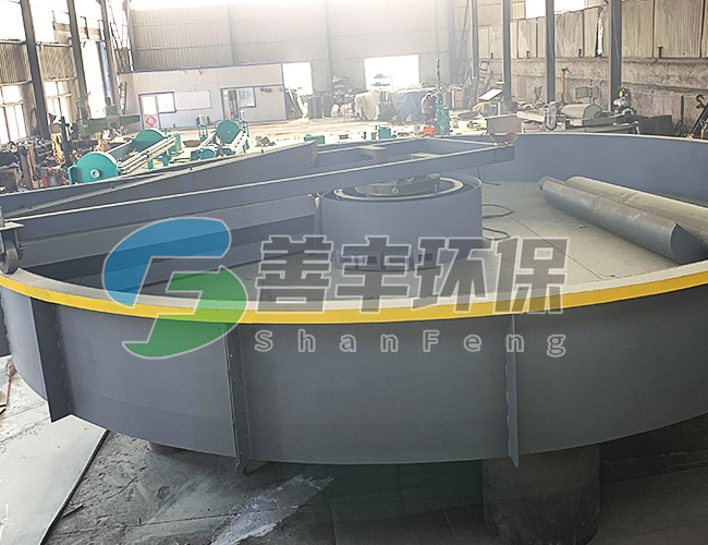 該設備整體呈圓柱形,結構緊湊,池子較淺。包含池體、螺旋布水機構、溶氣釋放機構、旋轉機架、集水機構,撇渣機構、溶氣系統、回流水管道及電控柜等部件。進水口,出水口和污泥的排出口均在設備的旋轉區域內,布水機構、集水機構、溶氣釋放機構都與框架緊密連接在一起,圍繞池體中心轉動。本裝置提供成套設備總成及控制系統,通過集中控制與分散控制相結合,以使設備達到更好運行狀態。