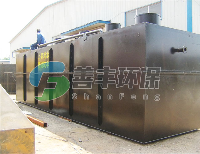 污水由排水系統(tǒng)收集后,進入污水處理站的格柵井,去除顆粒雜物后,進入調(diào)節(jié)池,進行均質(zhì)均量,再經(jīng)液位控制儀傳遞信號,由提升泵送至A級生物接觸氧化池,進行酸化水解和硝化反硝化,降低有機物濃度,去除部分氨氮,然后入流O級生物接觸氧化池進行好氧生化反應(yīng),在此絕大部分有機污染物通過生物氧化、吸附得以降解,出水自流至二沉池進行固液分離后,沉淀池上清液流入消毒池,經(jīng)投加氯片接觸溶解,殺滅水中有害菌種后達標(biāo)外排。由格柵截留下的雜物定期裝入小車傾倒至垃圾場,二沉池中的污泥部分回流至A級生物處理池,另一部分污泥至污泥池進行污泥消化后定期抽吸外運,污泥池上清液回流至調(diào)節(jié)池再處理。